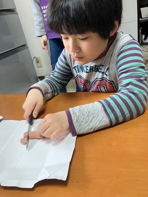 お次はタコのかわりの具のウィンナーを切ります!