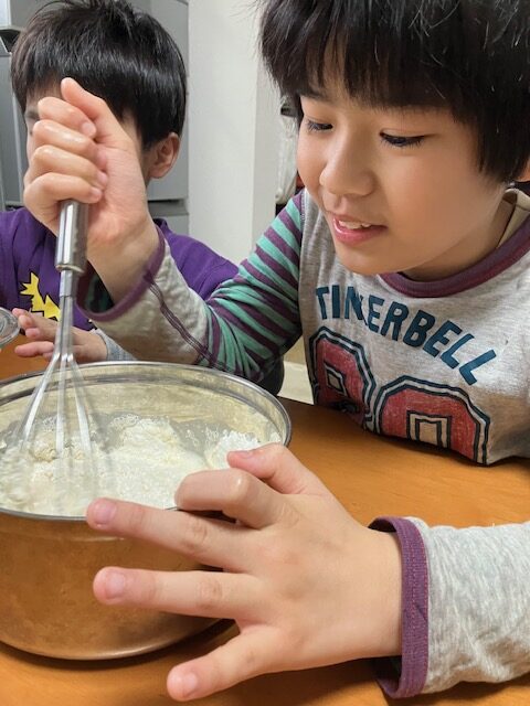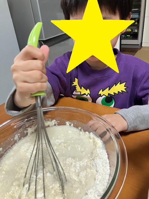 始めに生地作りから、お水を少しずつ入れながら混ぜます