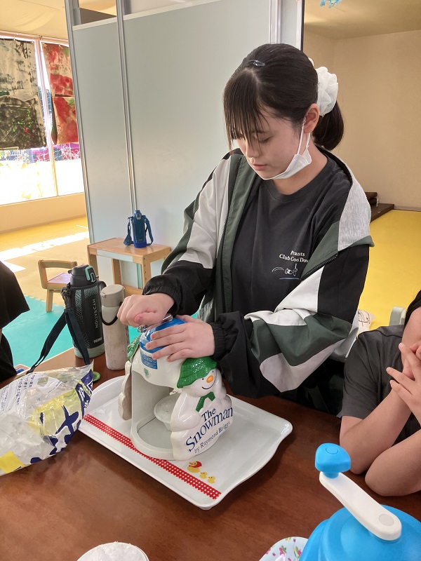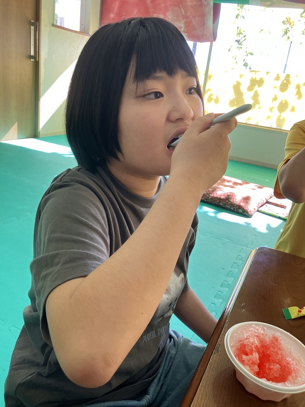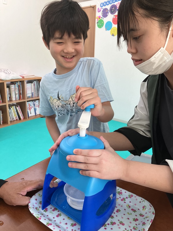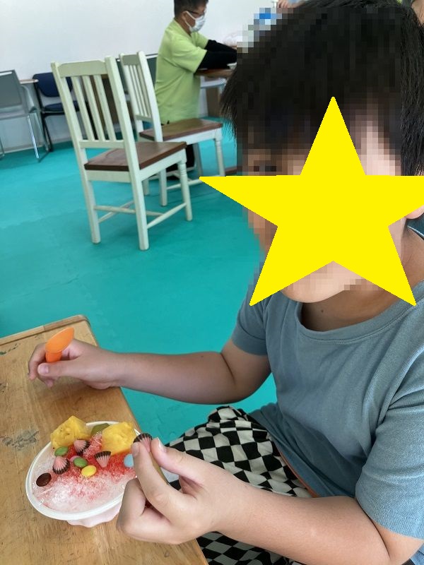 2025年9月22日 / 最終更新日時 : 2025年9月25日 和戸 放課後等デイサービスのブログ 夏の終わりのかき氷 [あったまぁる和戸] まだまだ残暑が続きますね~ お姉さんにお手伝いしてもらいながら よいしょ、よいしょ! 良い笑顔~ 自分でトッピングをして美味しそう(*^▽^*) 今年の夏も暑かった~(^_-)-☆ また来年もかき氷食べようね!!!
