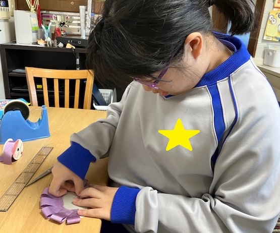 リボンを切って上手に貼って作ってくれてます
