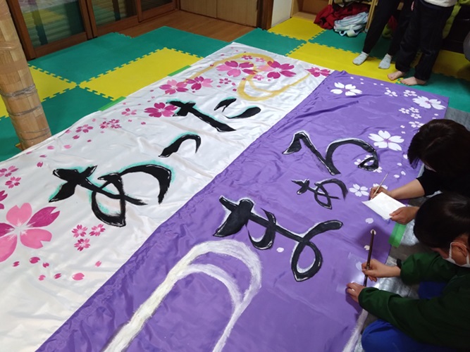 旗の紫側にも白の桜を描いてます